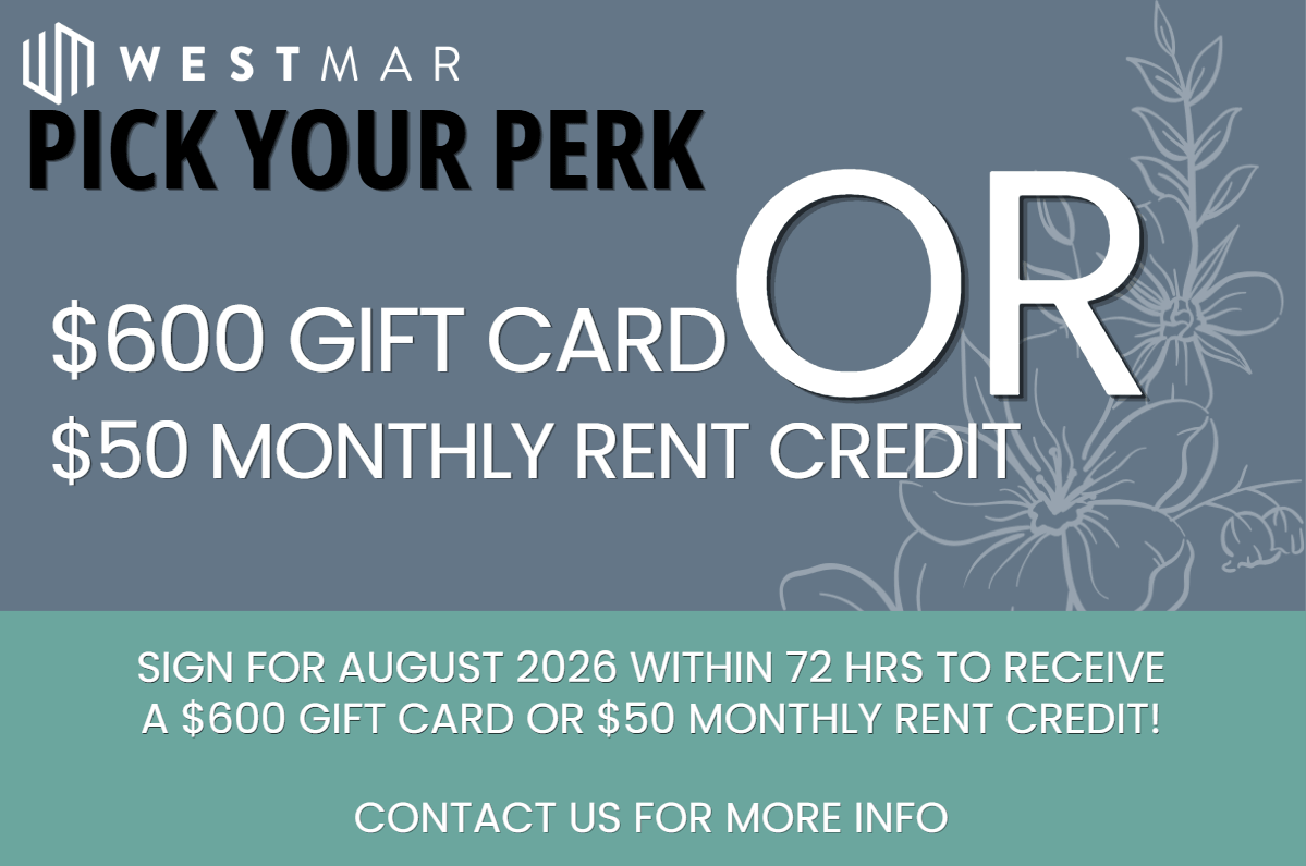 Although we are not a pet-friendly community, we welcome Emotional Support Animals and Service Animals to live here at Westmar! Please contact our leasing office more additional information.